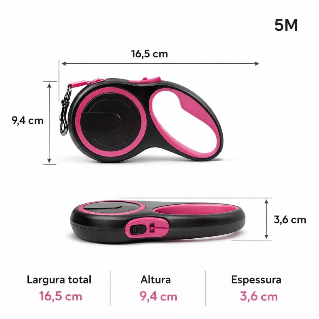 - 1 x Trela retrátil CDDMPET Rosa 5M